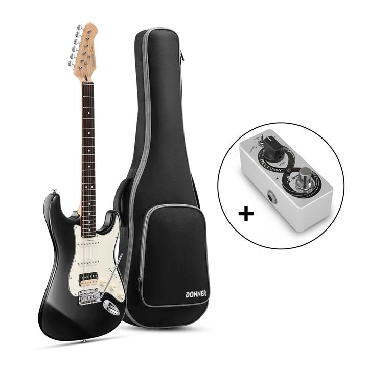 Donner DST-400 Solid Alder Body 2 Point Tremolo HSS Pickups Classic Electric Guitar Kit – Black / Guitar Kit+Looper