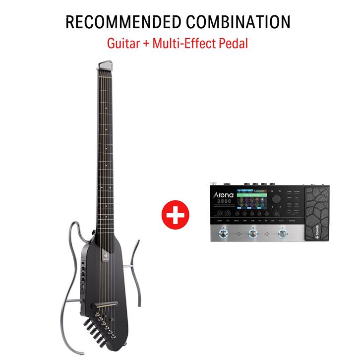 Donner HUSH™ I Acoustic-Electric Travel Guitar – Black / Guitar + Arena 2000 Pedal
